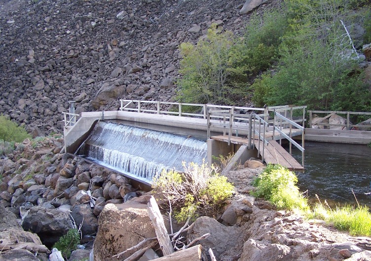 In contrast, a Streaming Hydropower system has no dam or lake. This diversion (center of picture) supplies water to a one-megawatt hydroelectric plant in California.